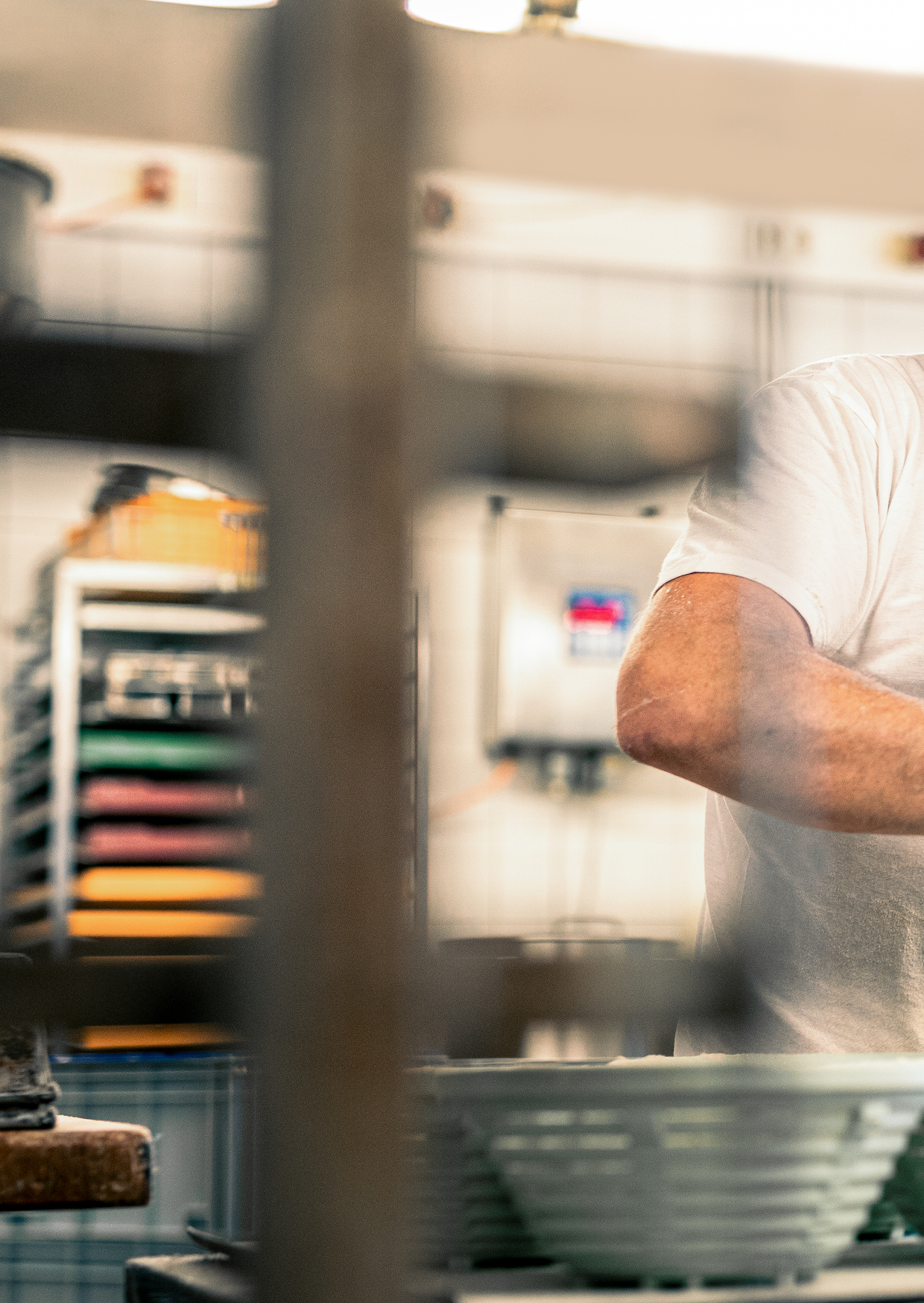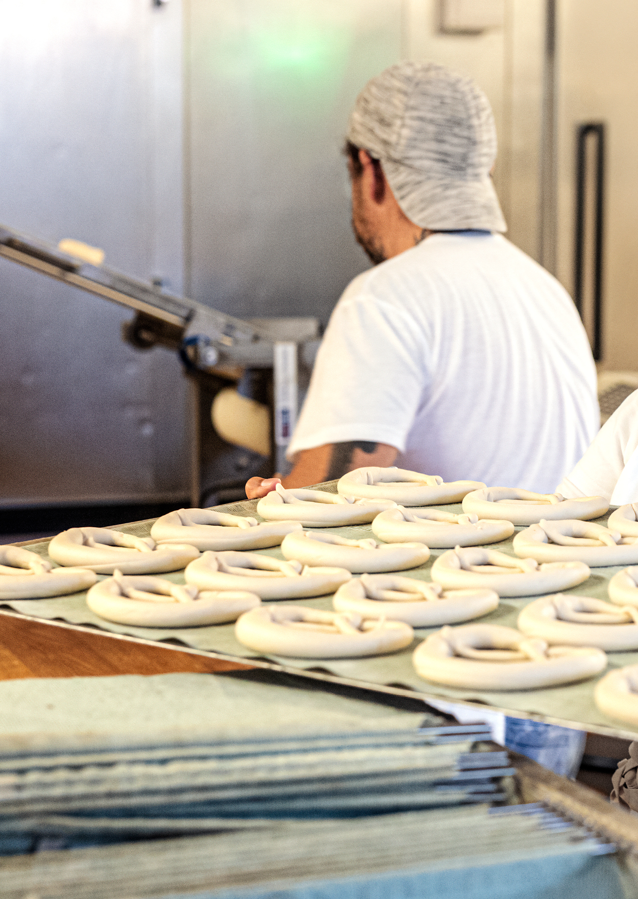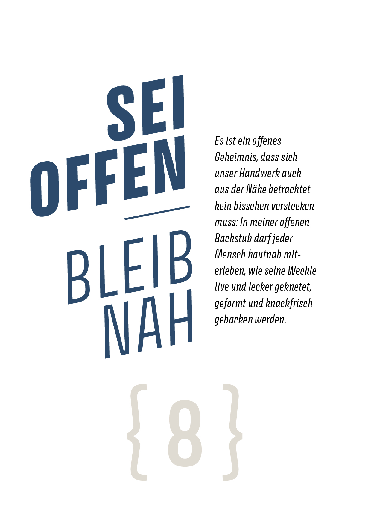 Es ist ein offenes Geheimnis, dass sich unser Handwerk auch aus der Nähe betrachtet kein bisschen verstecken muss: In meiner offenen Backstube darf jeder Mensch hautnah miterleben, wie seine Weckle live und lecker geknetet, geformt und knackfrisch gebacken werden. Und dabei bleibt es.